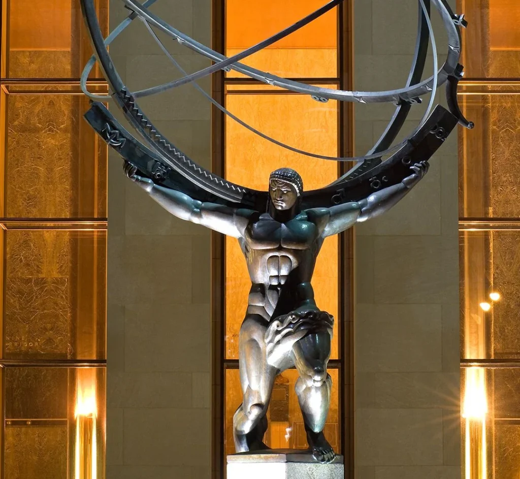 Atlas, the burden-bearer, the world-holder, is not what he seems. Atlas does not represent a heroic burden-bearing of the weight of the world’s concerns, like some pagan Christ figure. Nor does he represent a noble aristocratic order of Platonic guardian-rulers who must, in some confabulated inversion, proliferate the Promethean instincts on behalf of common people. Atlas represents an ossified order. He represents Man’s burden of carrying the “entropic down-winding” of the world as that which is overthrown. A deterministic, rationalist structure that is no longer creative and a scientific materialism that has calcified into a kind of superstitious bureaucracy. Atlas’ burden reminds us of the inevitable cyclicality of Promethean achievements which have been captured by Epimethean popularization, whereby they drift into a “standing reserve” and are collateralized and mortgaged, but no longer refreshed or revitalized.
