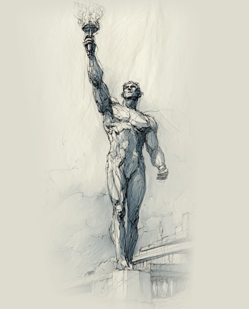 We author a new mythos. Powerful artistry in our age and this Colossus heralds the emergence of a new way of being. A new form of Man – one who does not live by the herd, who does not need approval or permission. A being who creates his own beauty and meaning, and his own morality, who lives above conventions and follows only his own will, his own mythopoetic vision, and creates according to his own mythotechnological ethos.