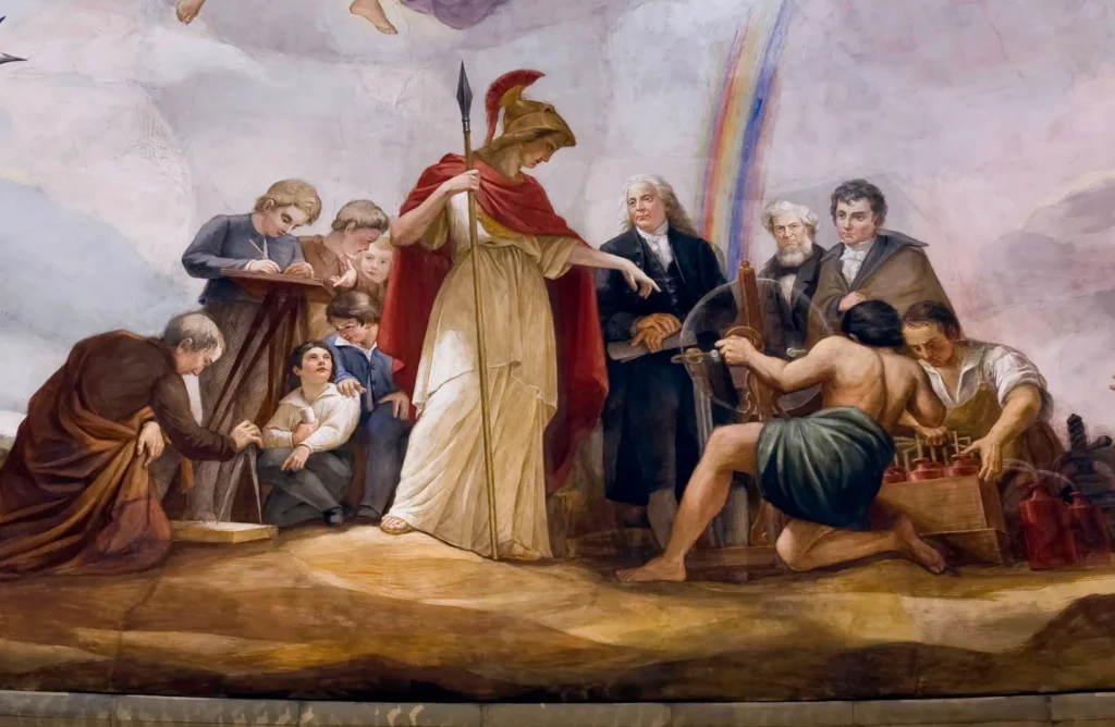 As a contemporary example, Prometheus is also a face of Dionysus but which reflects Man’s native power, excellence, strength and industriousness. He is a similar, but vastly more powerful symbol to Columbia and Liberty and in a masculine, post-industrial, technology-enabled form for a bold, new America. His symbol reflects an American landscape which has been metabolized but where new frontiers of technological, and indeed mythotechnological expansion and liberation are here at our doorstep. Prometheus is not only the archetypal locomotion of the West-qua-West. He is the Titan of Freedom, the Pursuit of Happiness and Manifest Destiny. The most powerful of original core American ideals, the most ripe and essential aspects of what it is to be American and Western. And he reflects the spirit of our age more than any other archetypal figure.